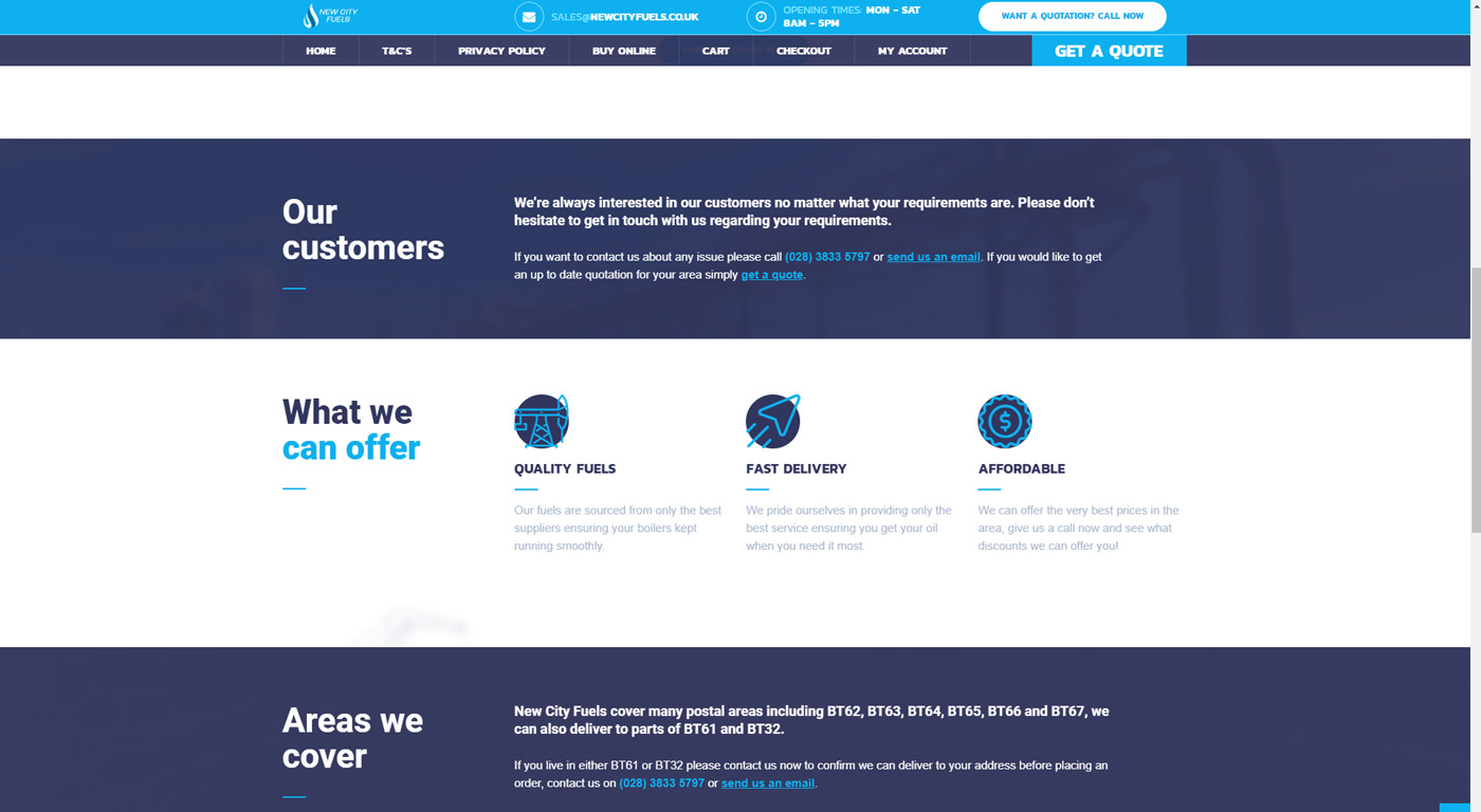 Website design and development for local home heating oil delivery company New City Fuels based in Portadown. New City Fuels is a Portadown based family run business who are very experienced in oil delivery services with over 25 years experience.
