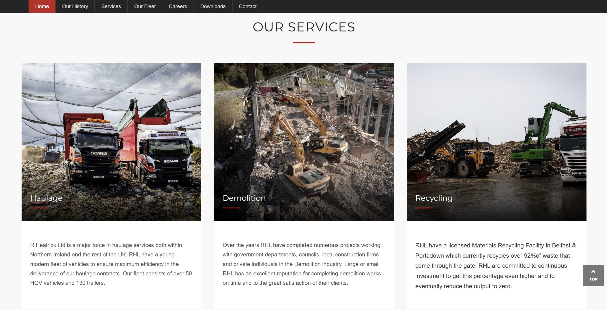 - Clear and Concise Information: Content is structured to provide visitors with easy access to information about R Heatrick Ltd’s services, history, and fleet.